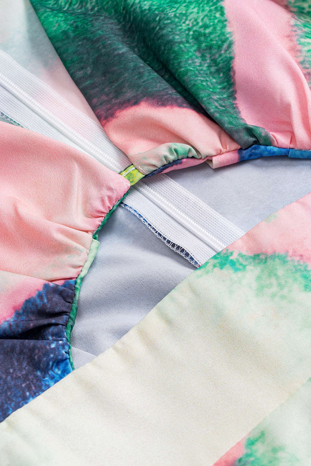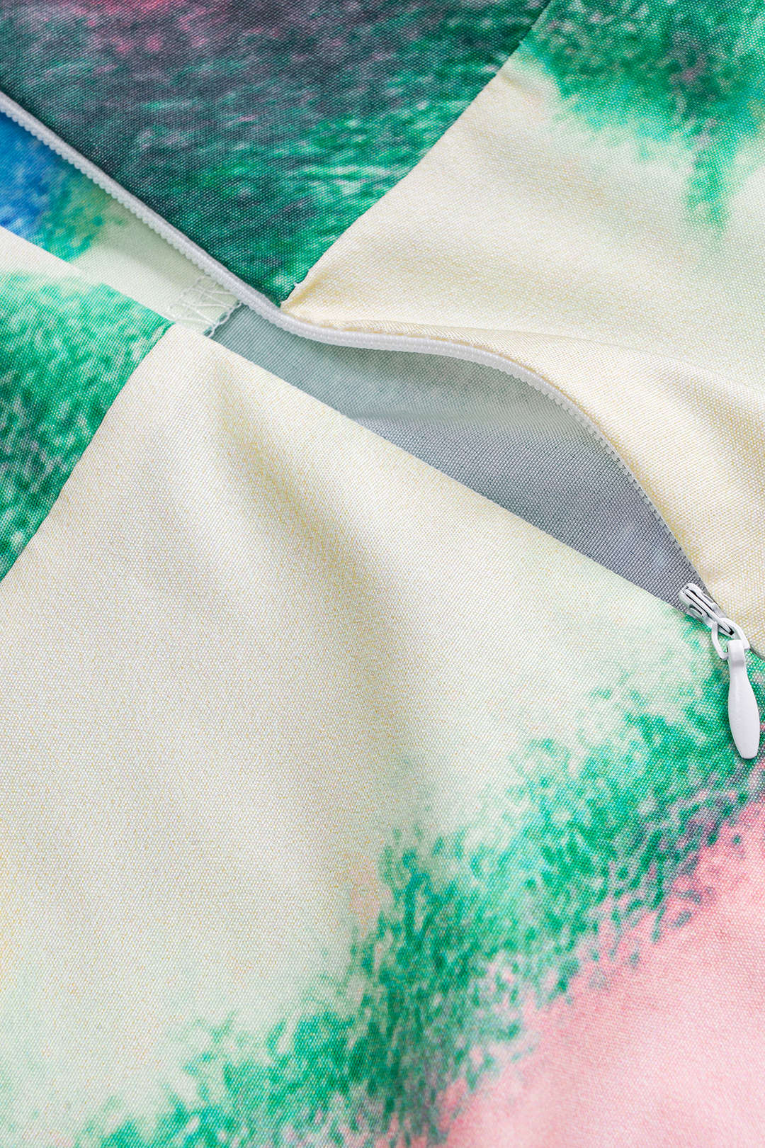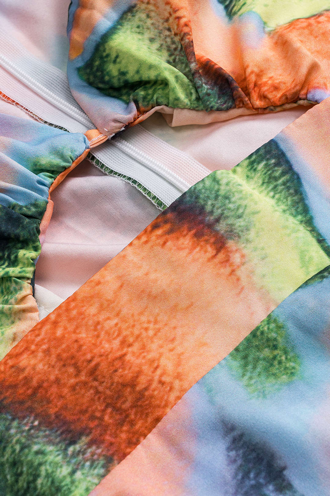 Watercolor Print Cut Out V-Neck Long Sleeve Midi Dress