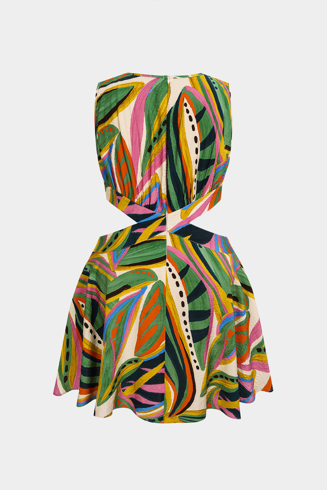 Plus Size Abstract Print Round Neck Cut Out Sleeveless Mini Dress