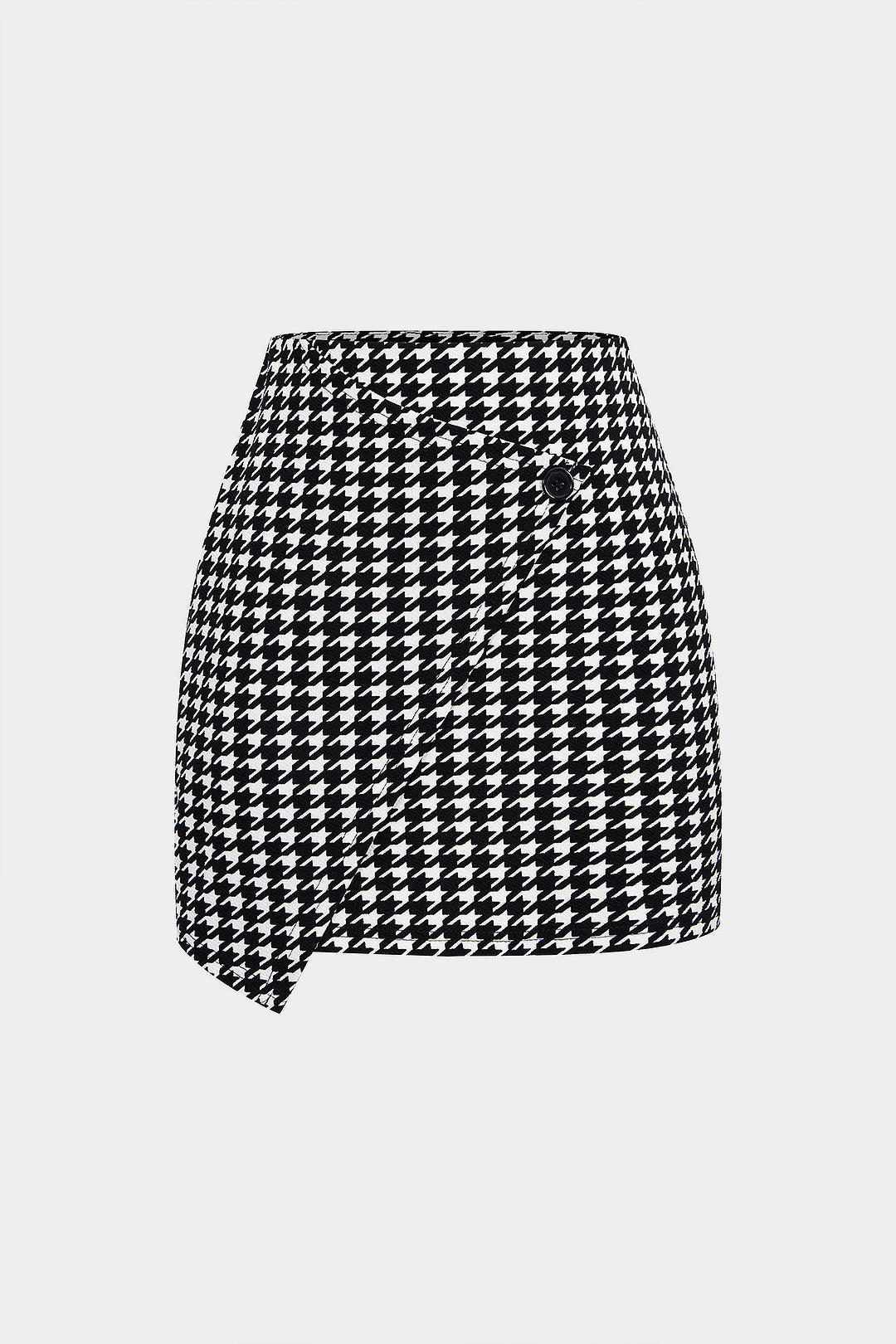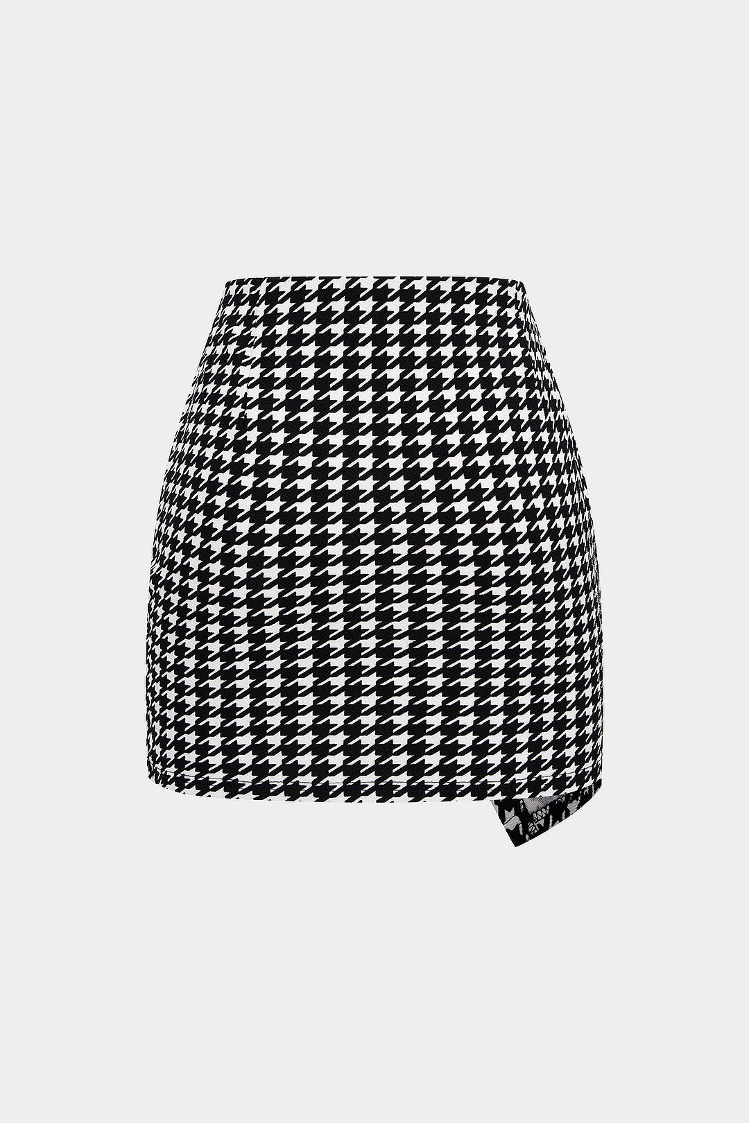 Houndstooth Print Wool High Waist Asymmetrical Skirt