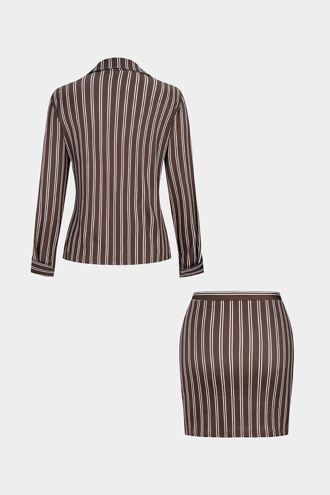 Contrast Stripes Print Long Sleeve Top And Button Bodycon Skirt Set