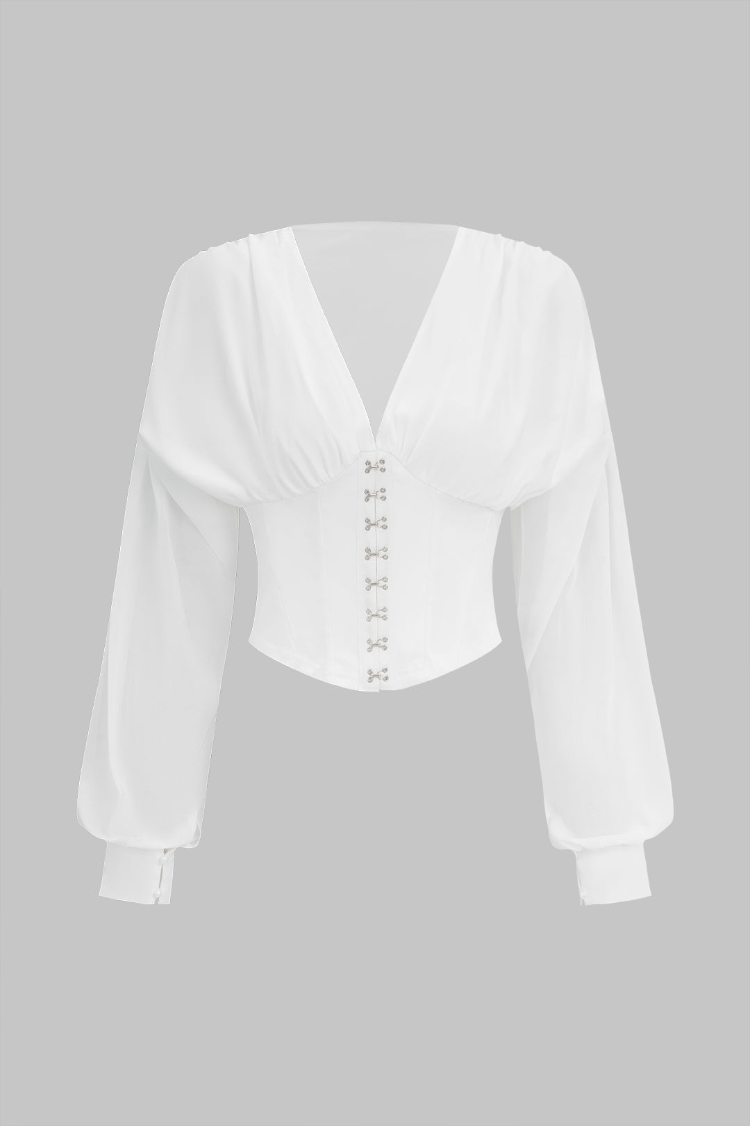 Chiffon V-Neck Hook And Eye Long-Sleeve Shirt