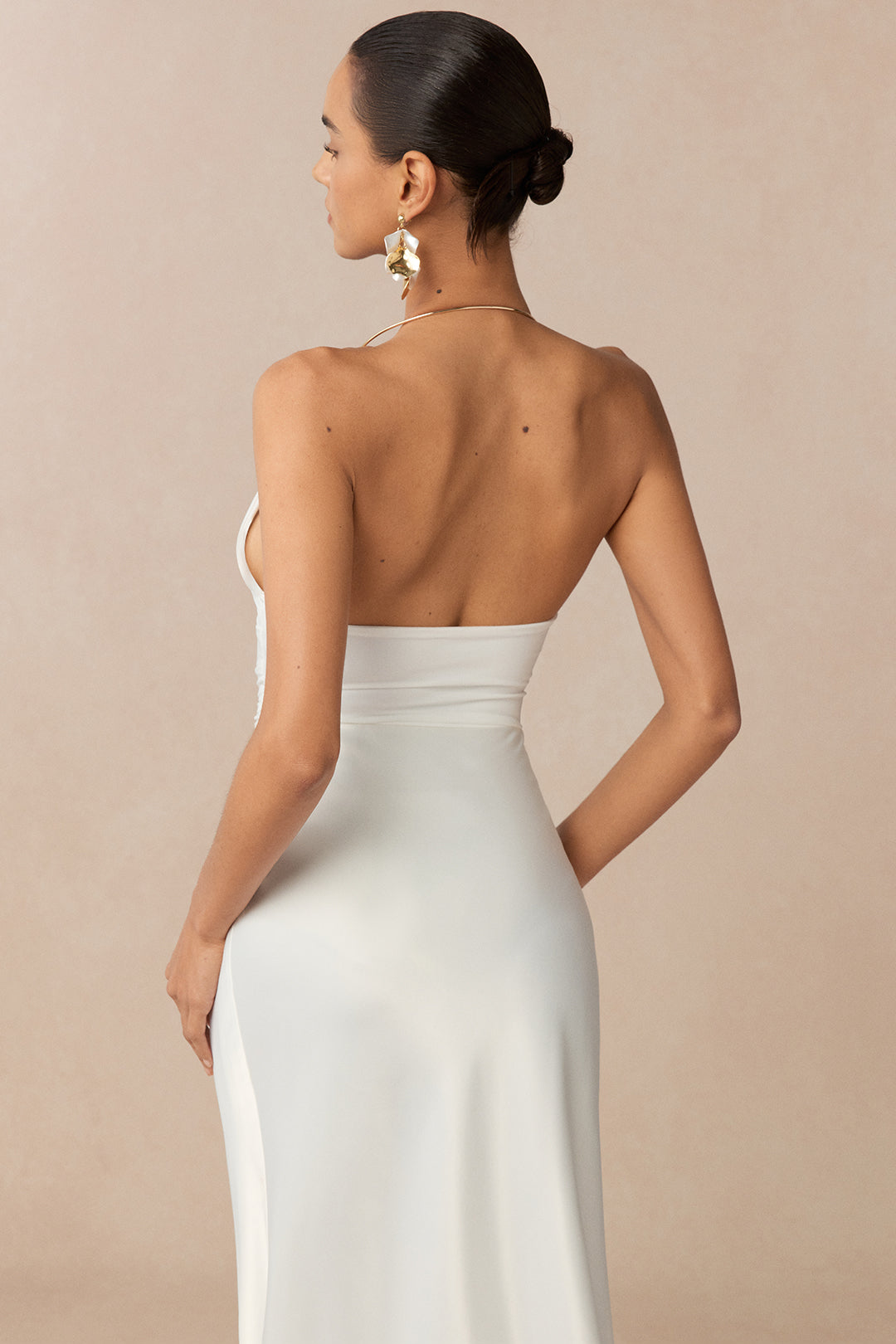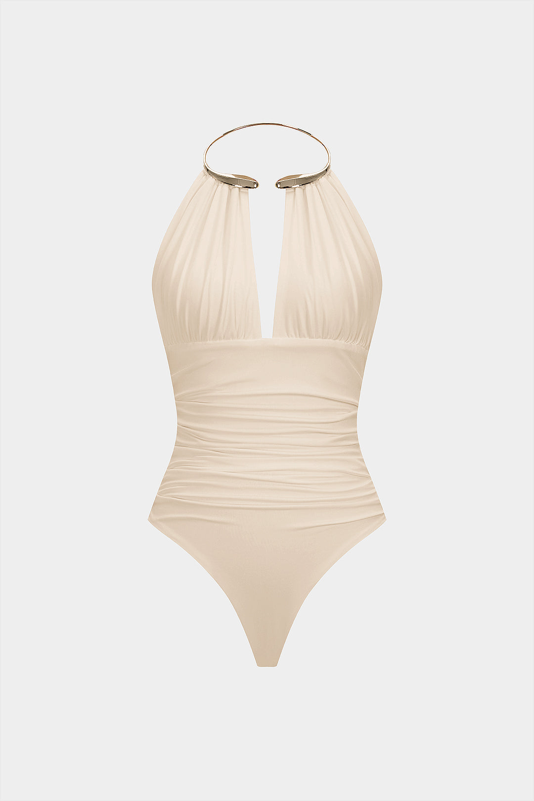 Metallic Decor Halter Neck Ruched Sleeveless Backless Bodysuit