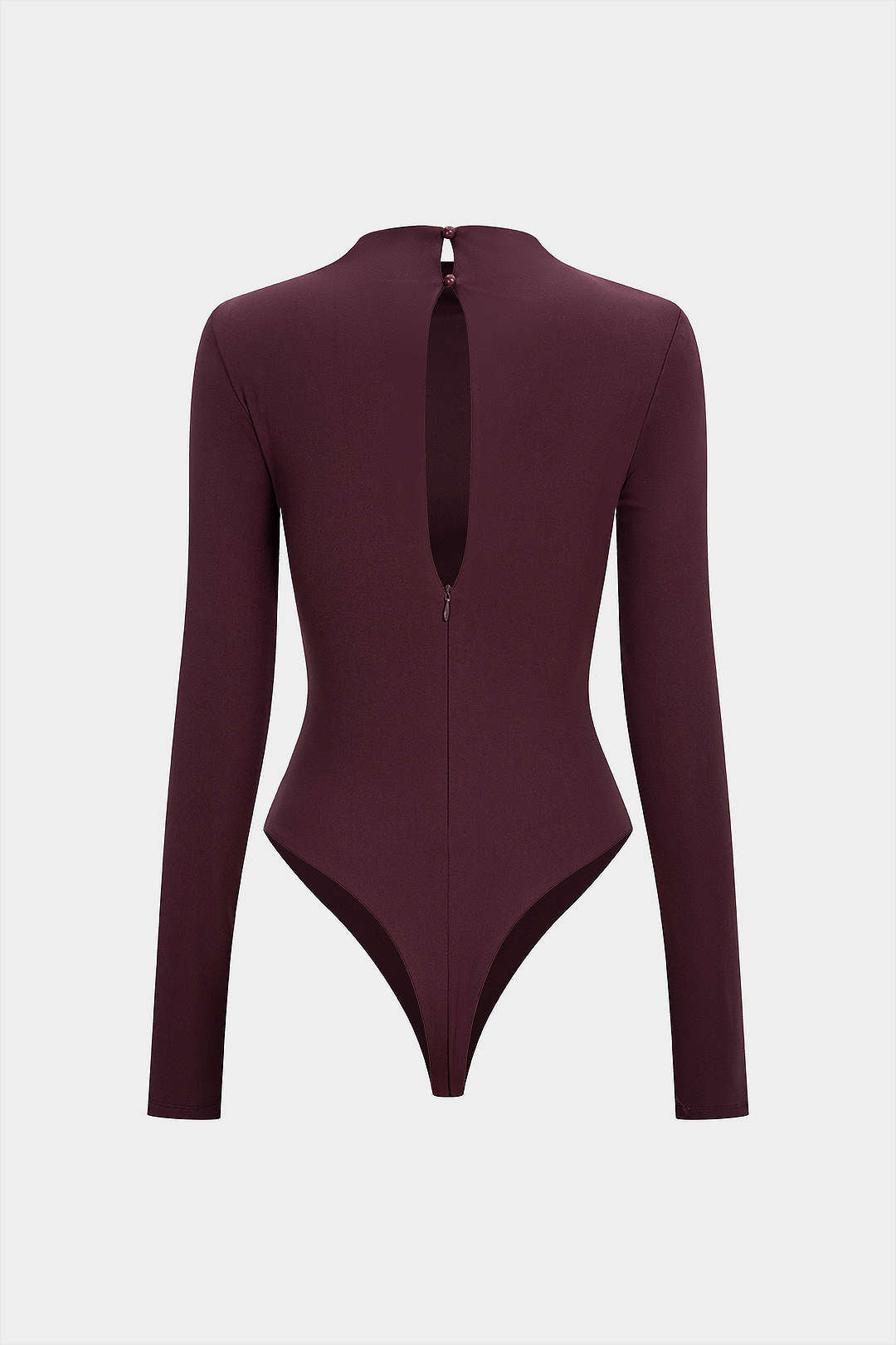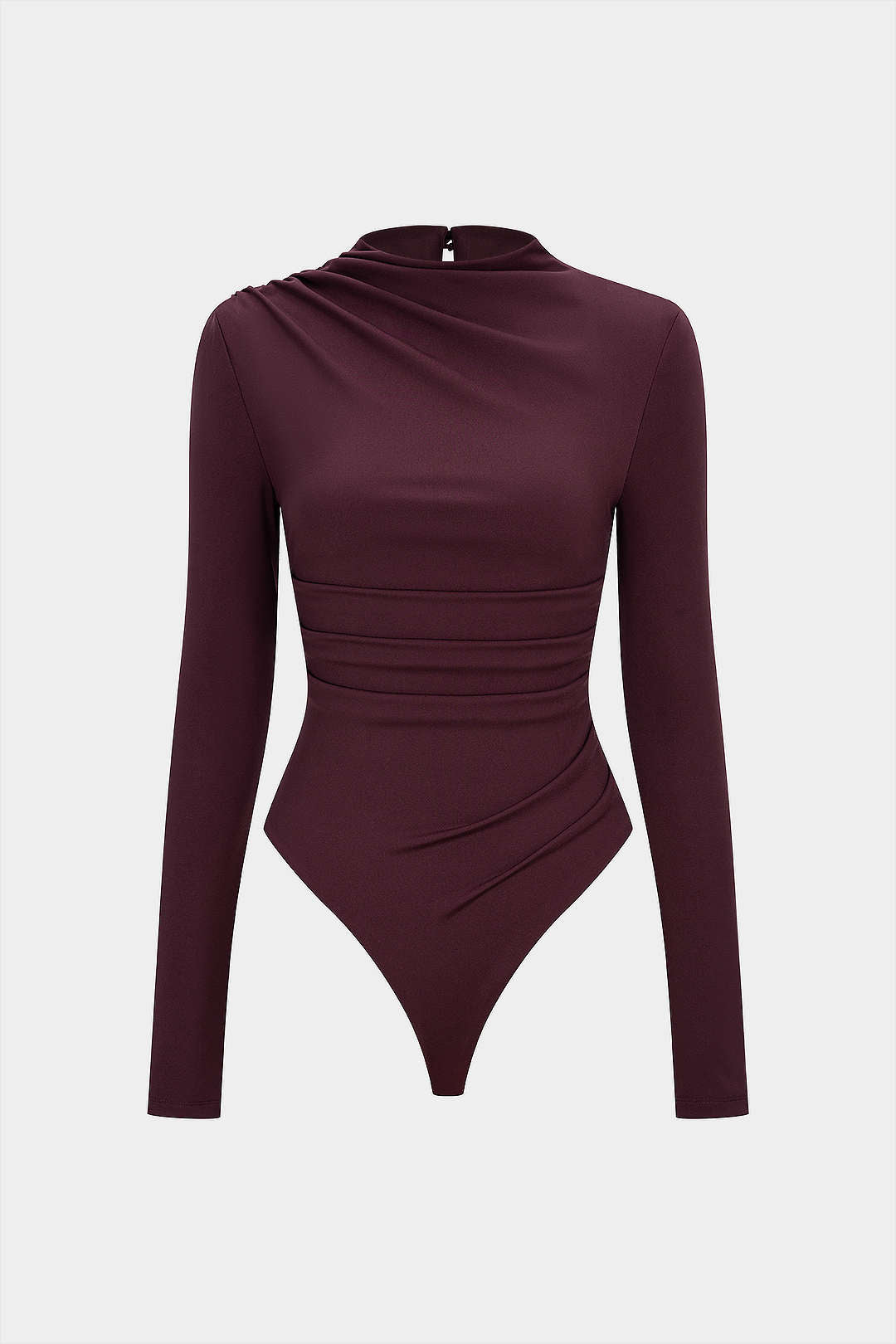 Mesh Ruched Asymmetrical Long Sleeve Bodysuit