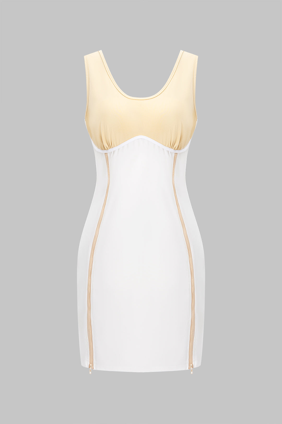 Contrast Zipper U-Neck Mini Dress