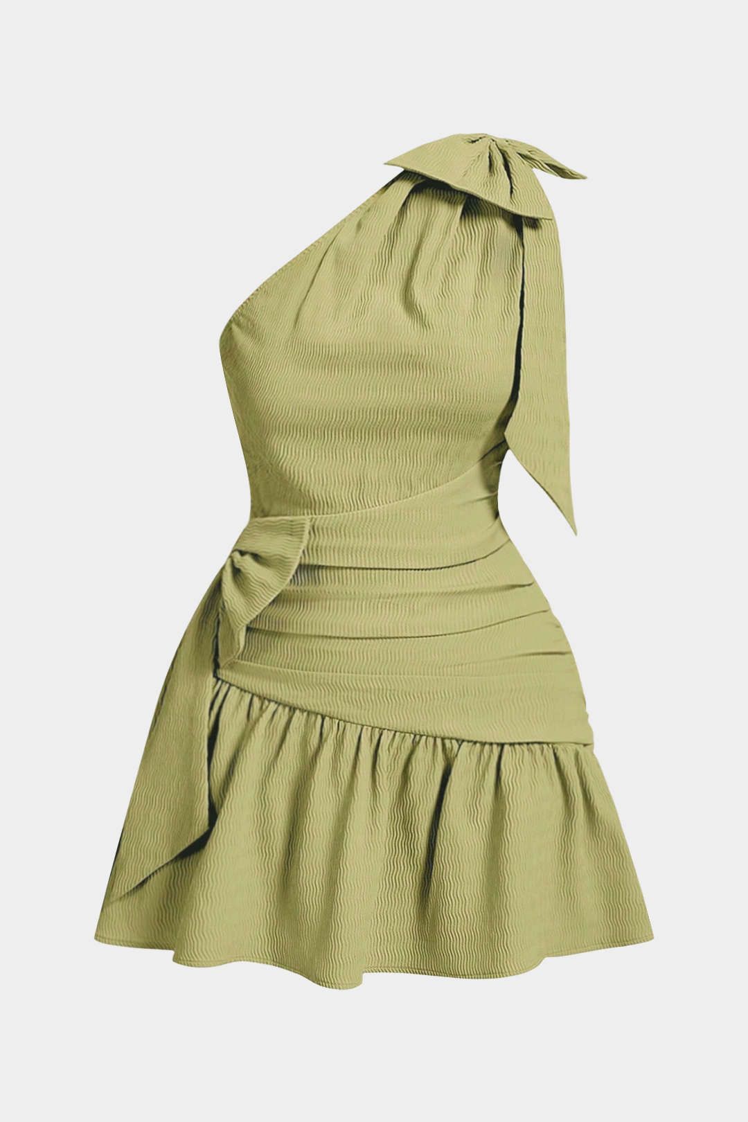 Plus Size One Shoulder Bow Ruched Sleeveless Mini Dress
