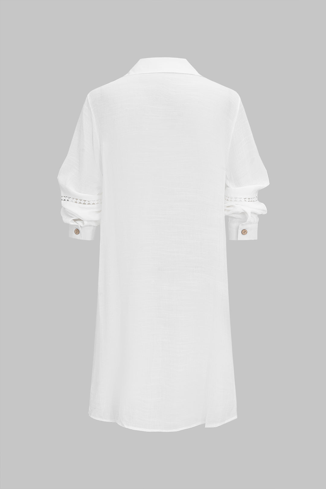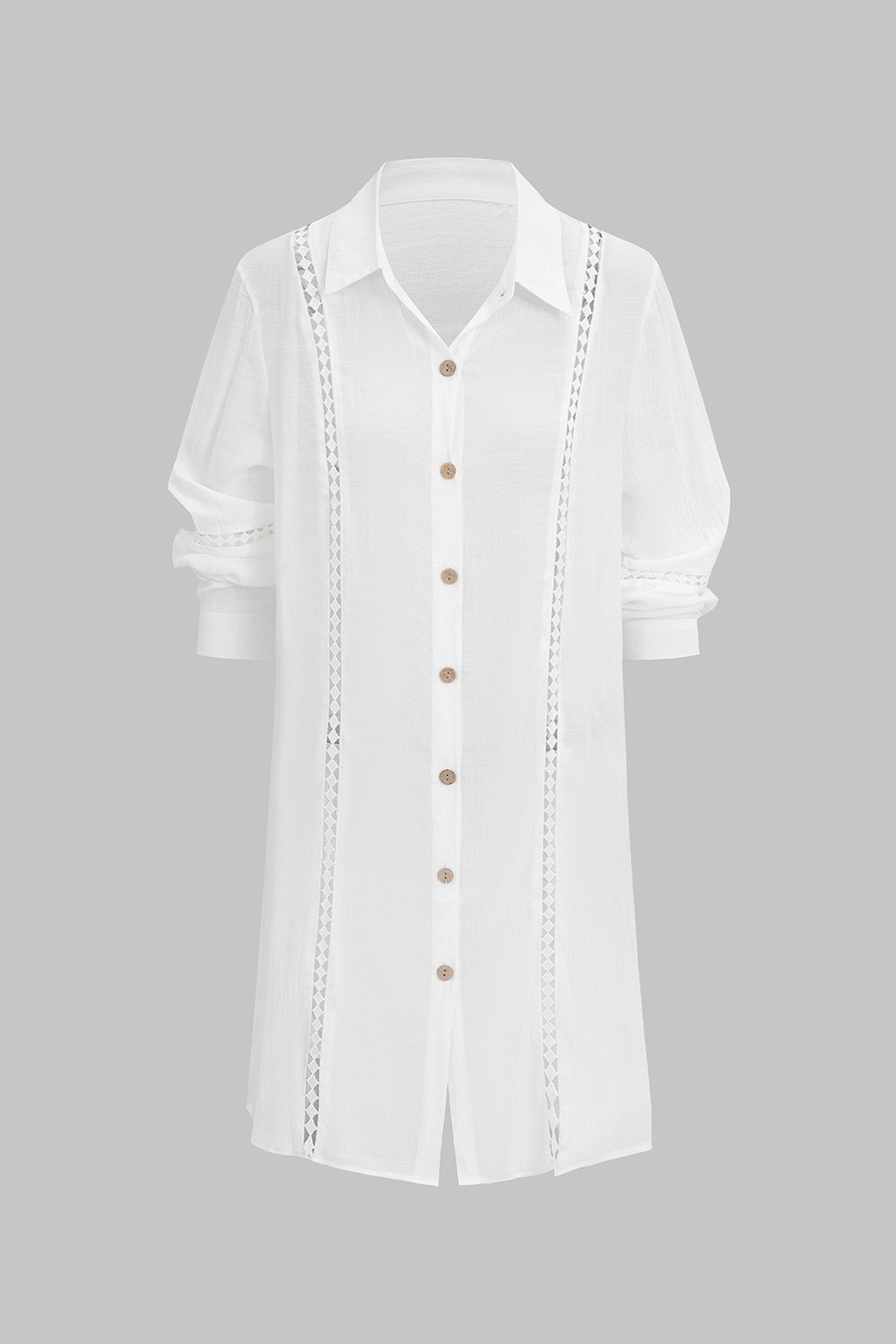 Solid Button Hollow Out Long-Sleeve Shirt