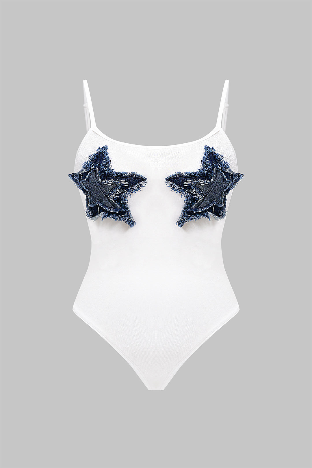 Plus Size Denim Patchwork Sleeveless Bodysuit