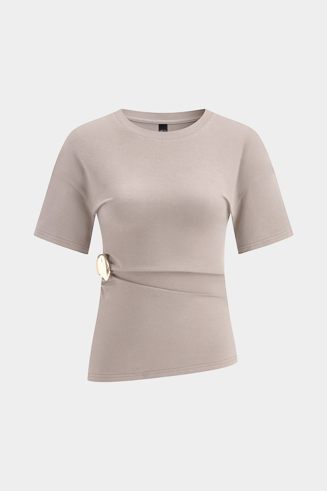 Round Neck Asymmetrical Short Sleeve T-Shirt
