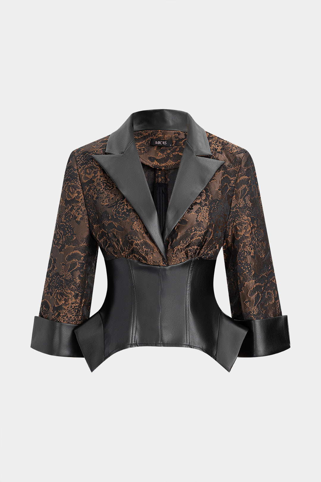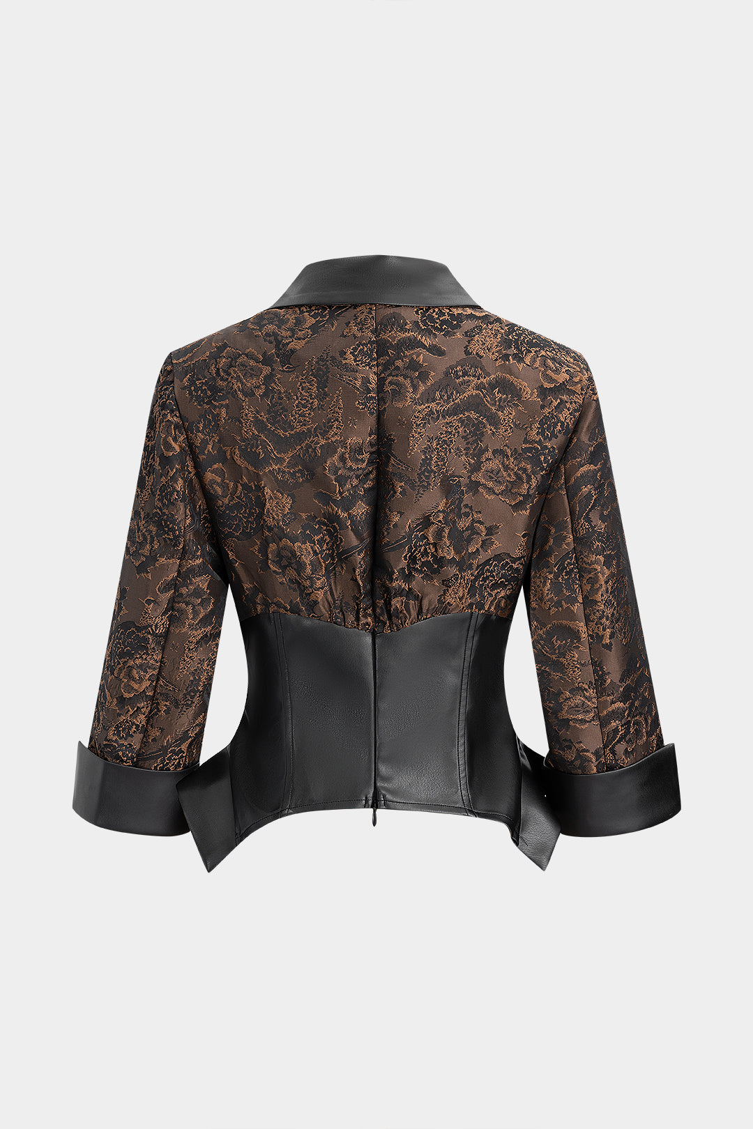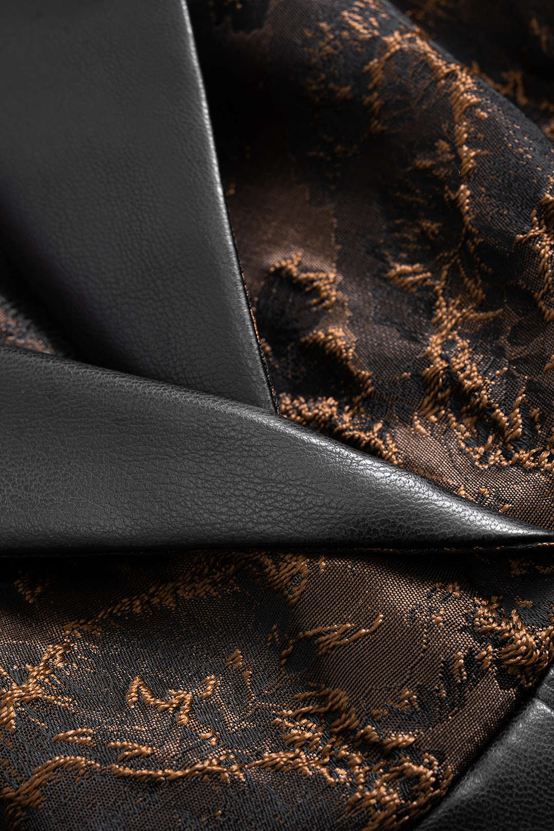 Jacquard Patchwork Faux Leather Long-Sleeve Shirt