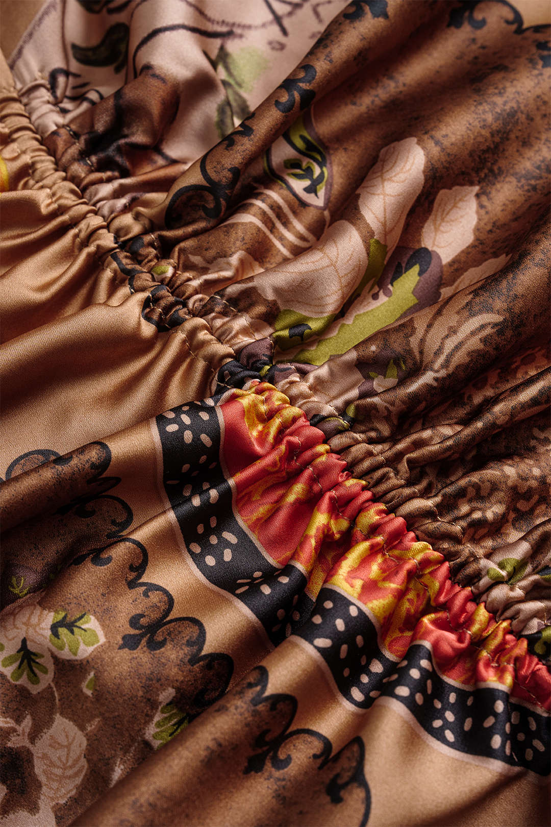 Plus Size Bohemian Print Cowl Neck Ruched Sleeveless Mini Dress