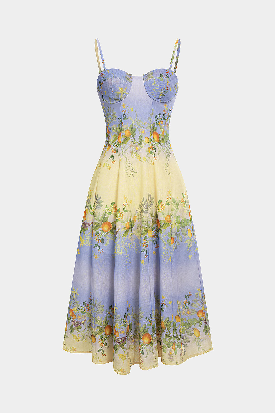 Leaves Print Bustier Zipper Sleeveless Midi Dress