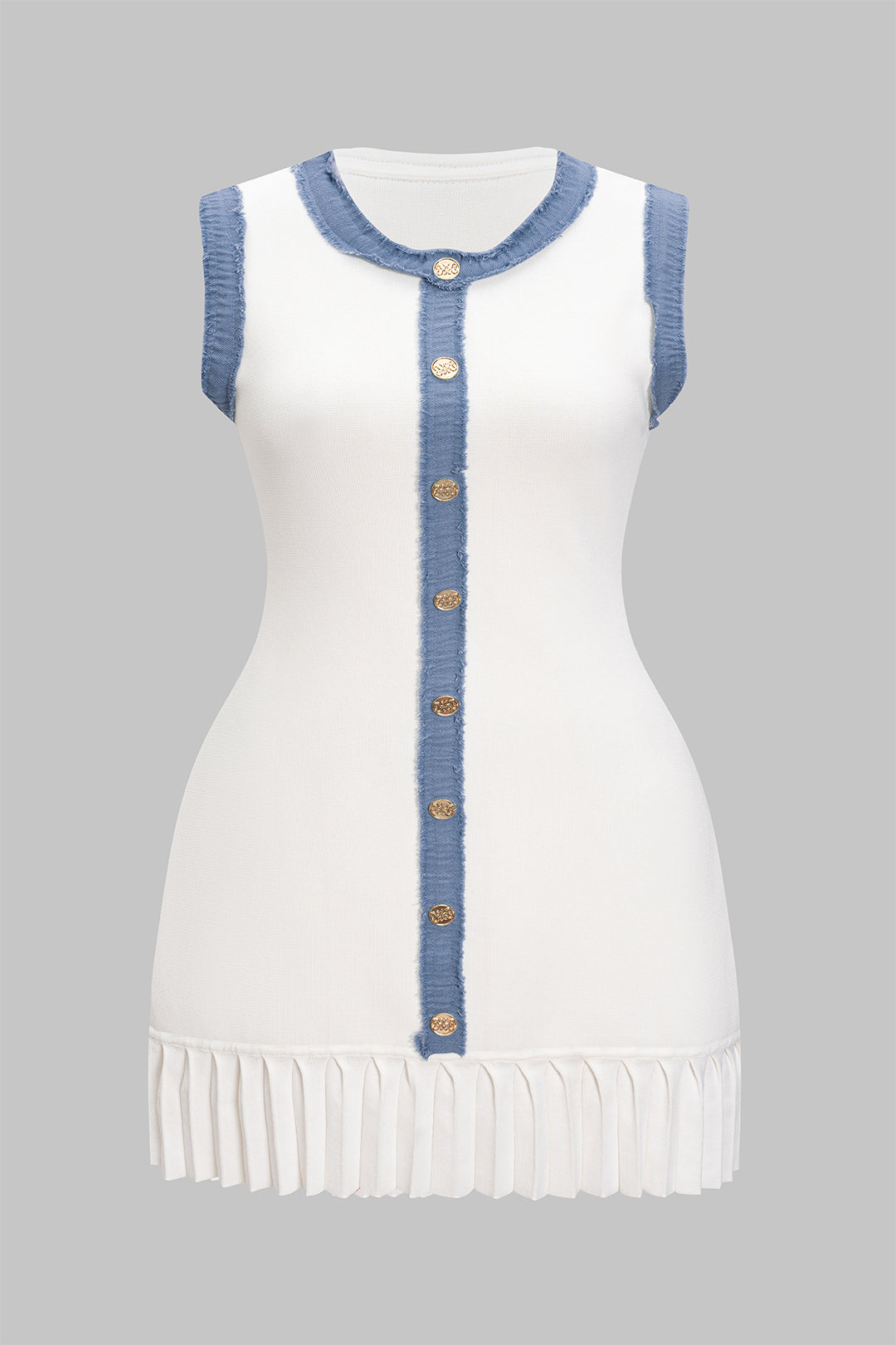 Plus Size Knit Patchwork Contrast Button Sleeveless Dress
