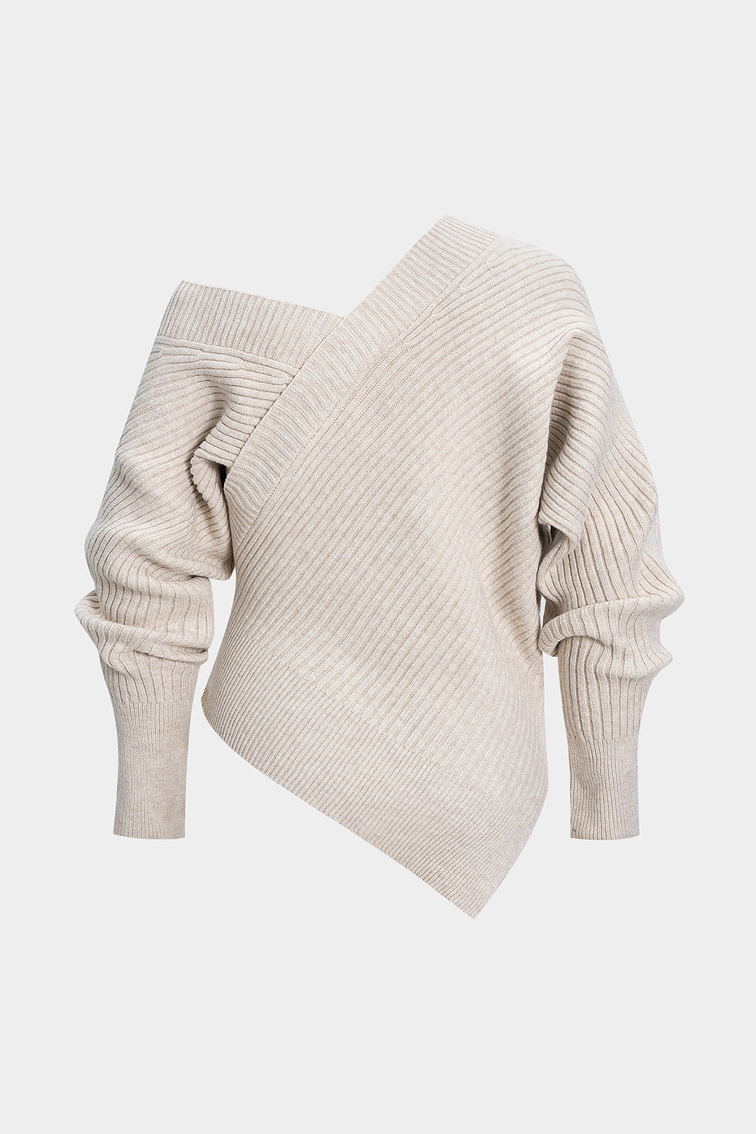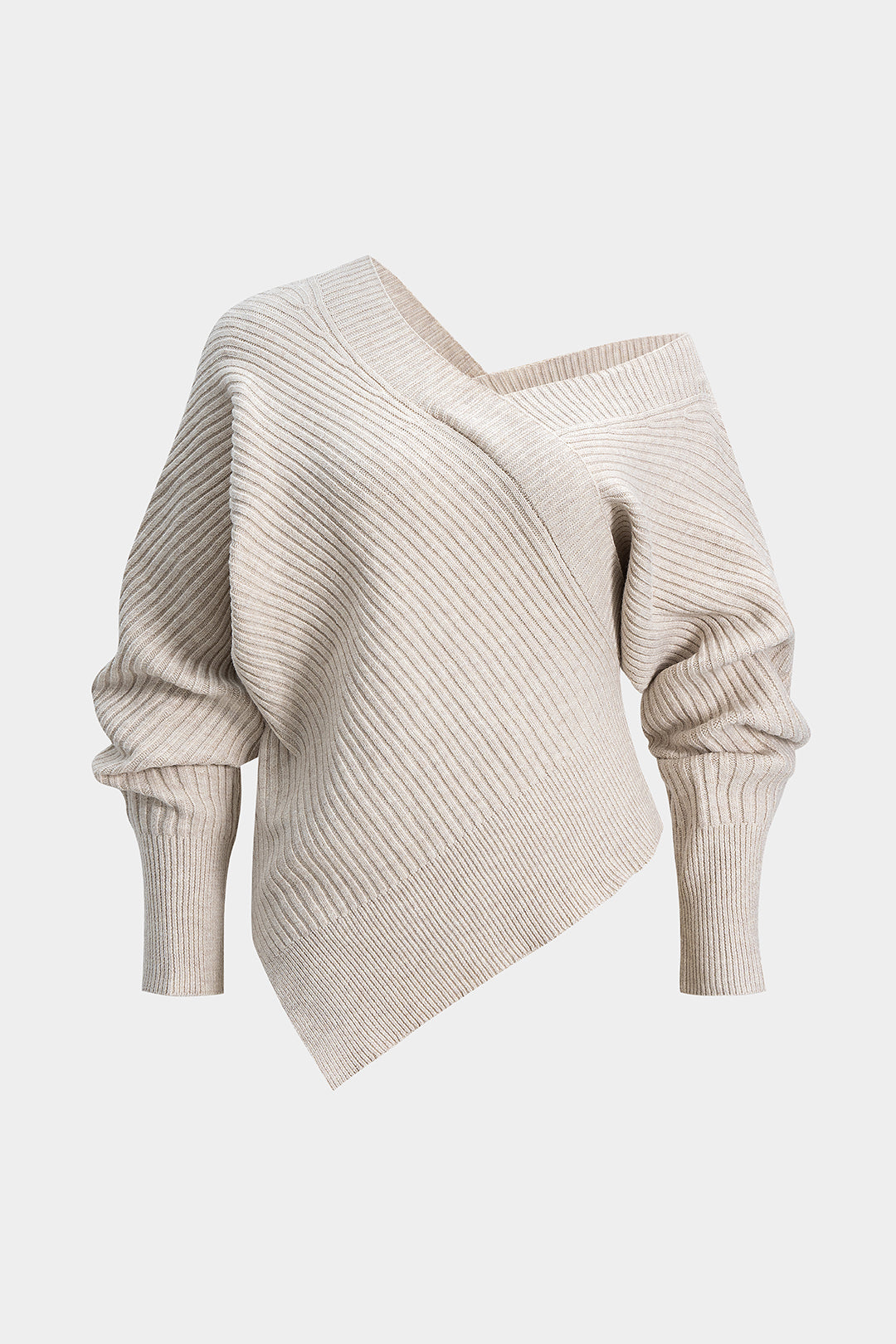 Plus Size Knit V-Neck Asymmetrical Long-Sleeve Top