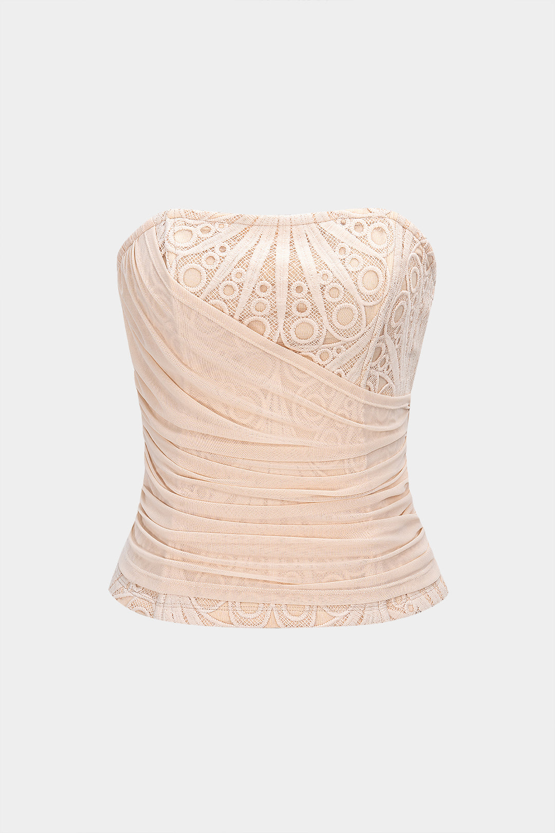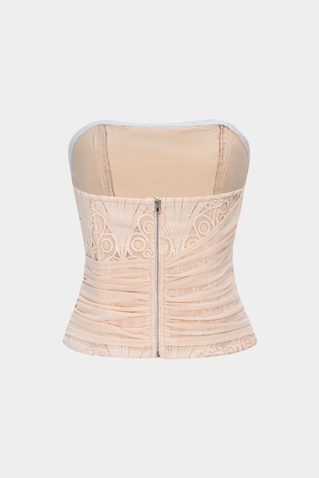 Mesh Lace Patchwork Zipper Tube Top