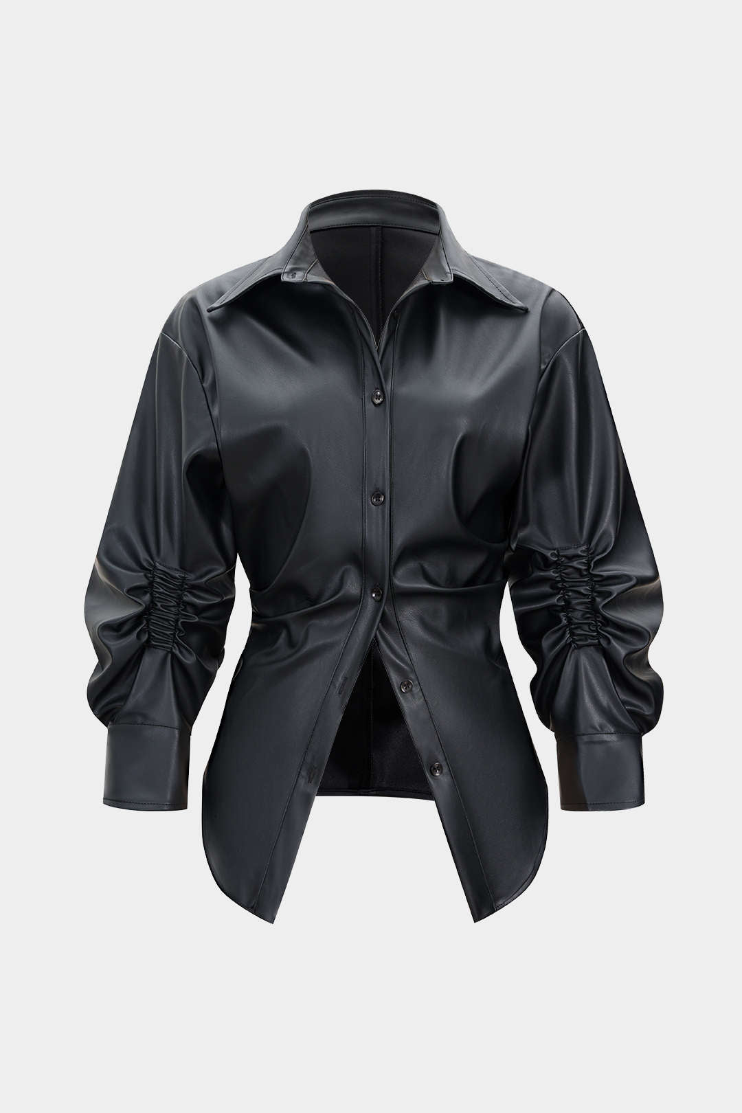 Faux Leather Ruched Button Asymmetrical Shirt
