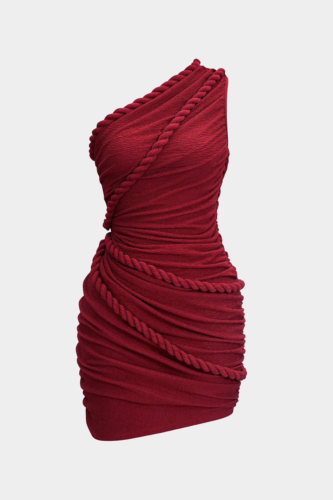 Ruched One Shoulder Twist Knot Sleeveless Mini Dress