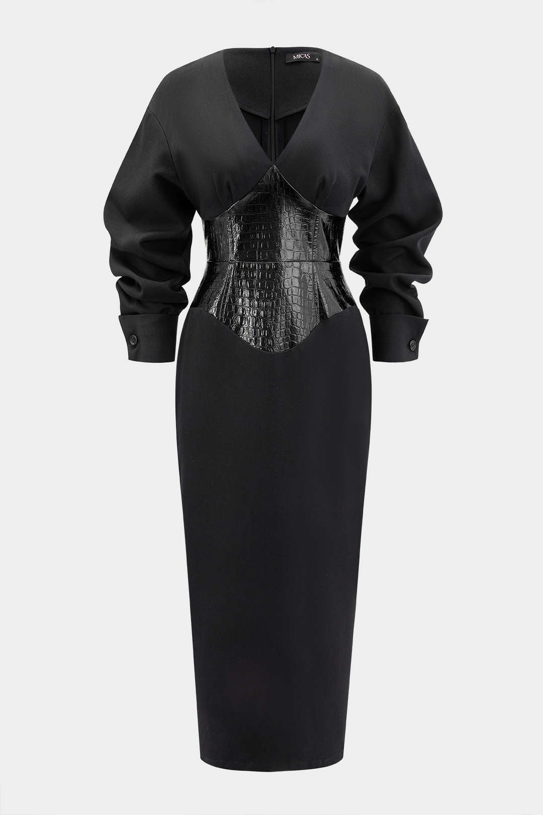 Crocodile Print Faux Leather Patchwork Long Sleeve Maxi Dress