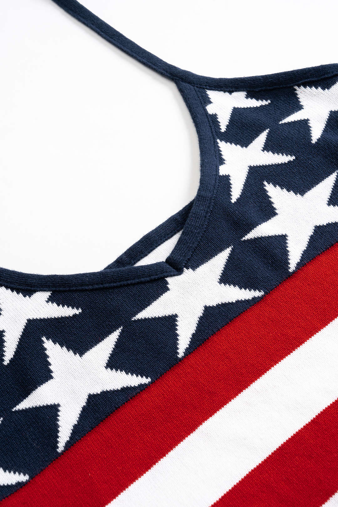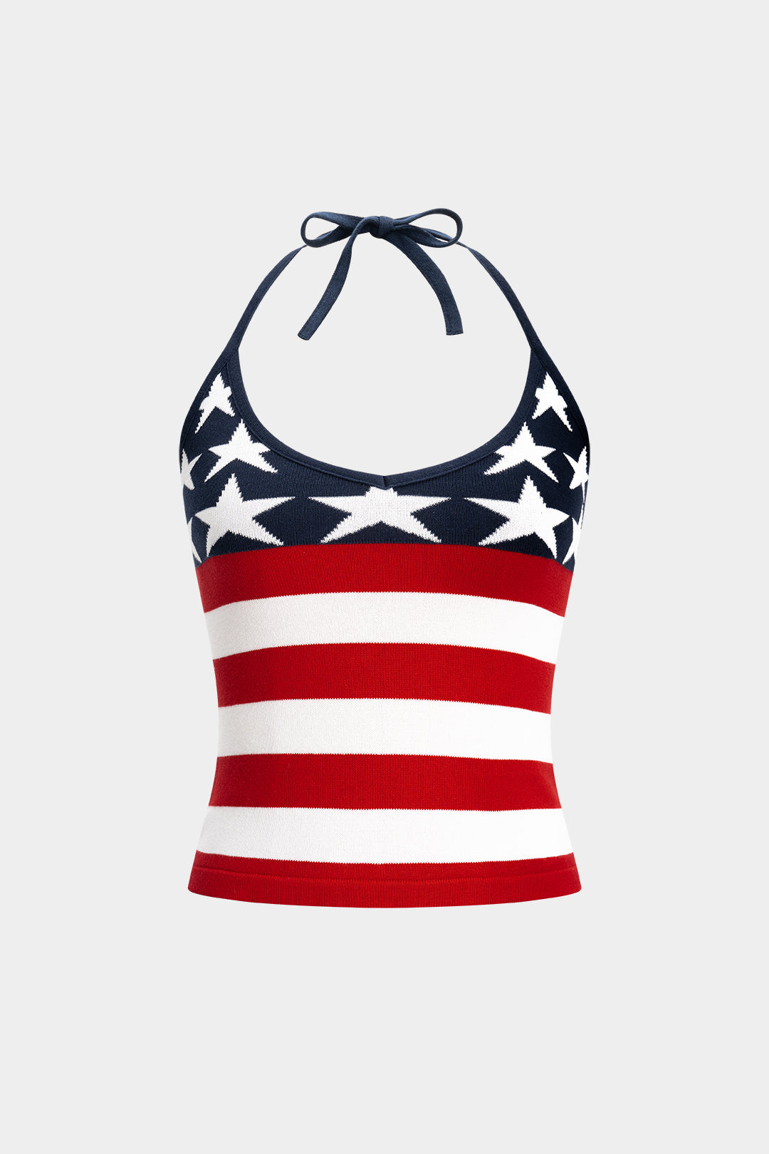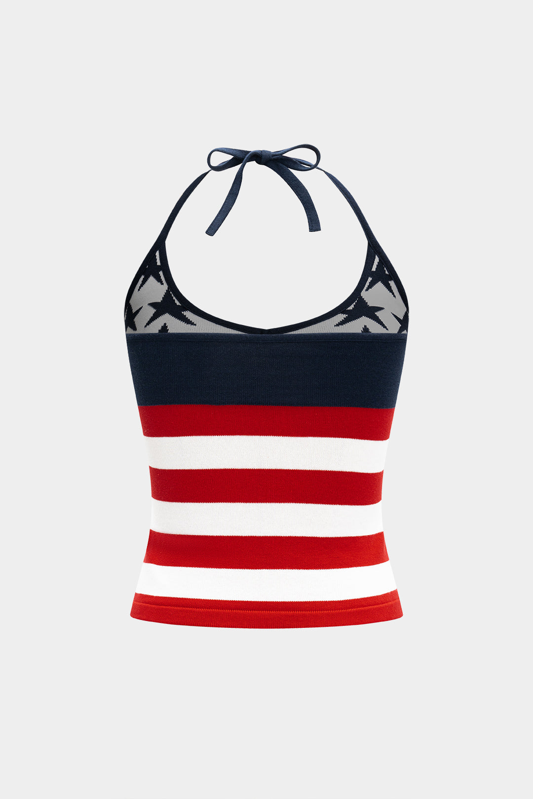 Knit Contrast Halter Neck Tie-Up Tank Top