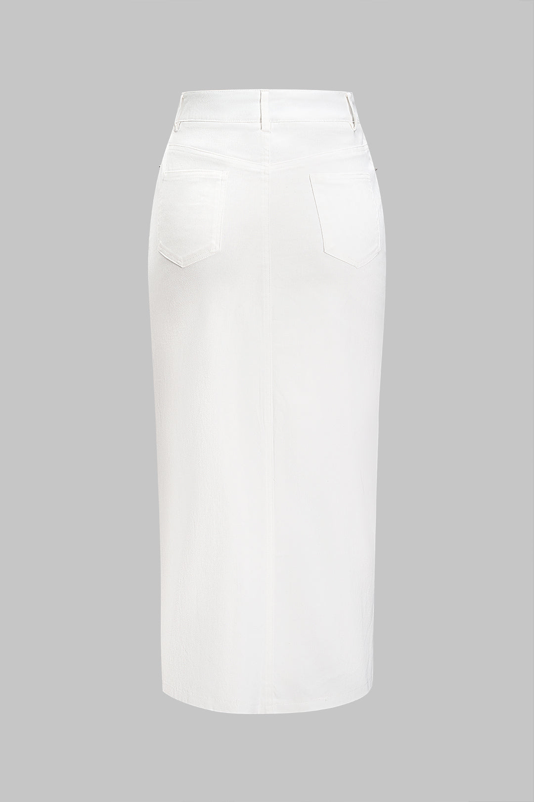 Denim Split Long Straight Skirt