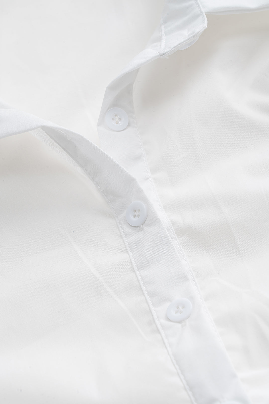 Chiffon Ruched Asymmetrical Ruffle Hem Long-Sleeve Shirt