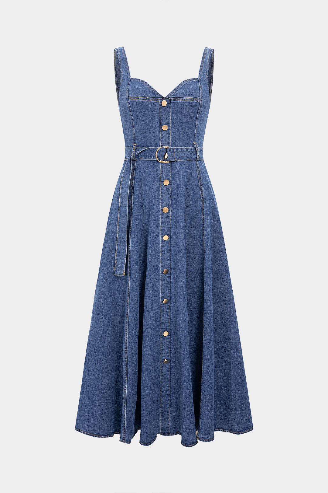 Denim Button Belted Zipper Sleeveless Dress