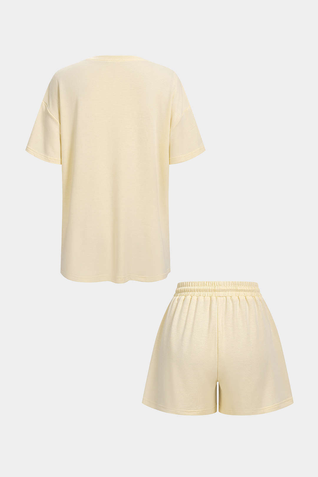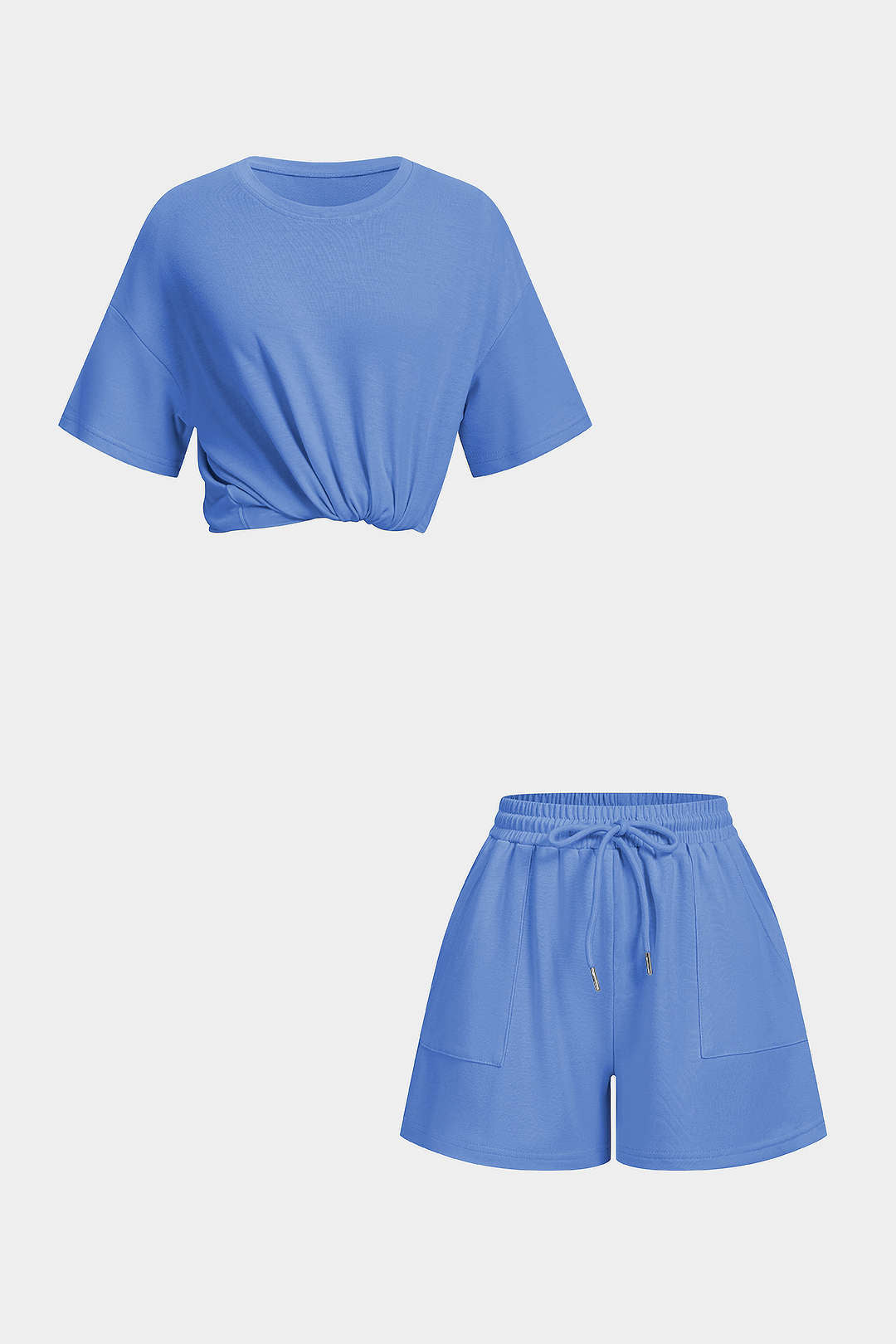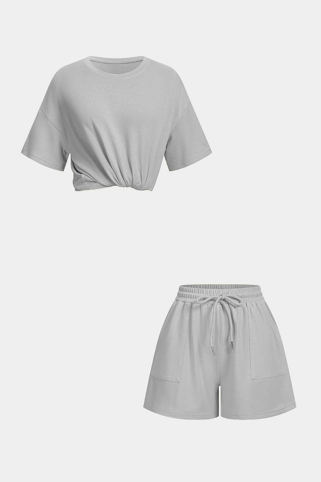 Solid Round Neck Top And Drawstring Shorts Set