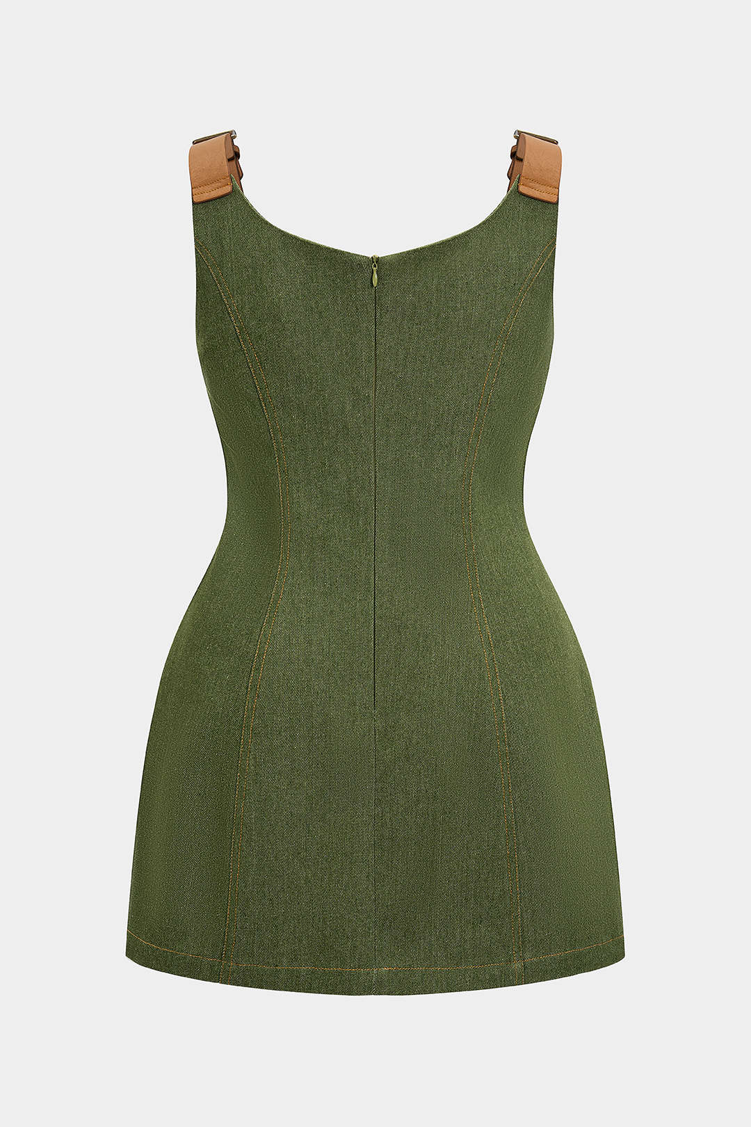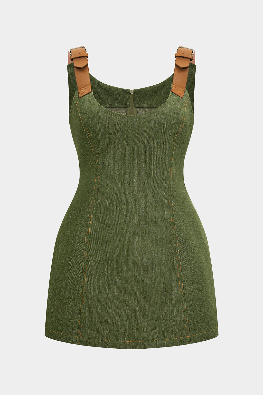 Plus Size Denim Neck Zipper Sleeveless Mini Dress