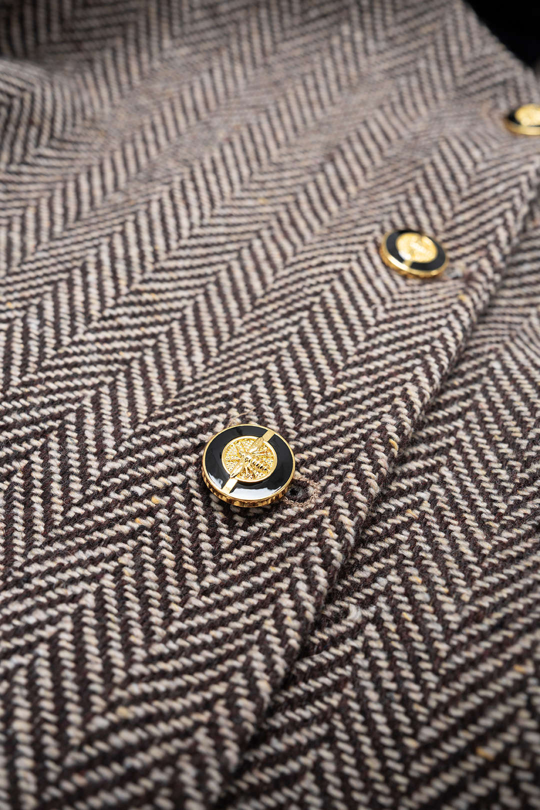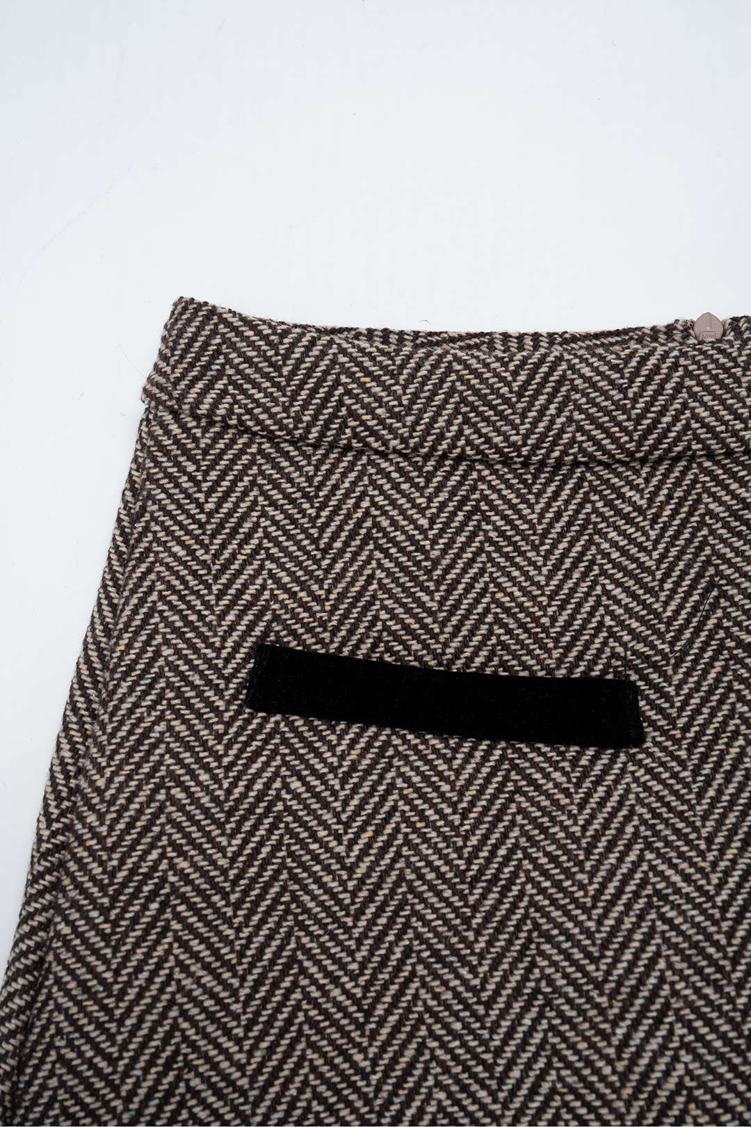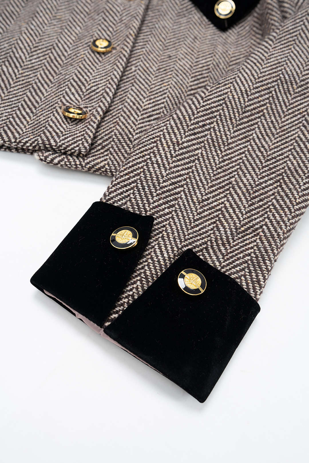 Metallic Button Contrast Cuffed Cropped Jacket And Fake Pocket Zipper Mini Skirt Set