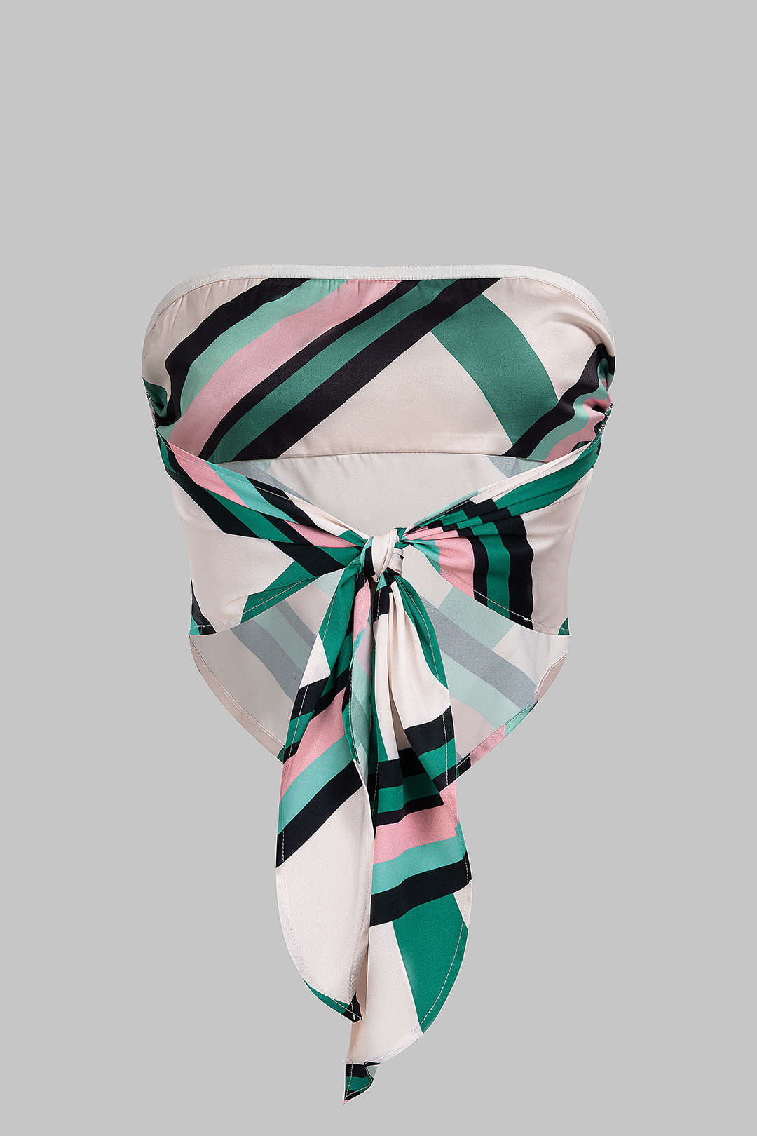 Stripes Print Satin Tie Back Tube Top