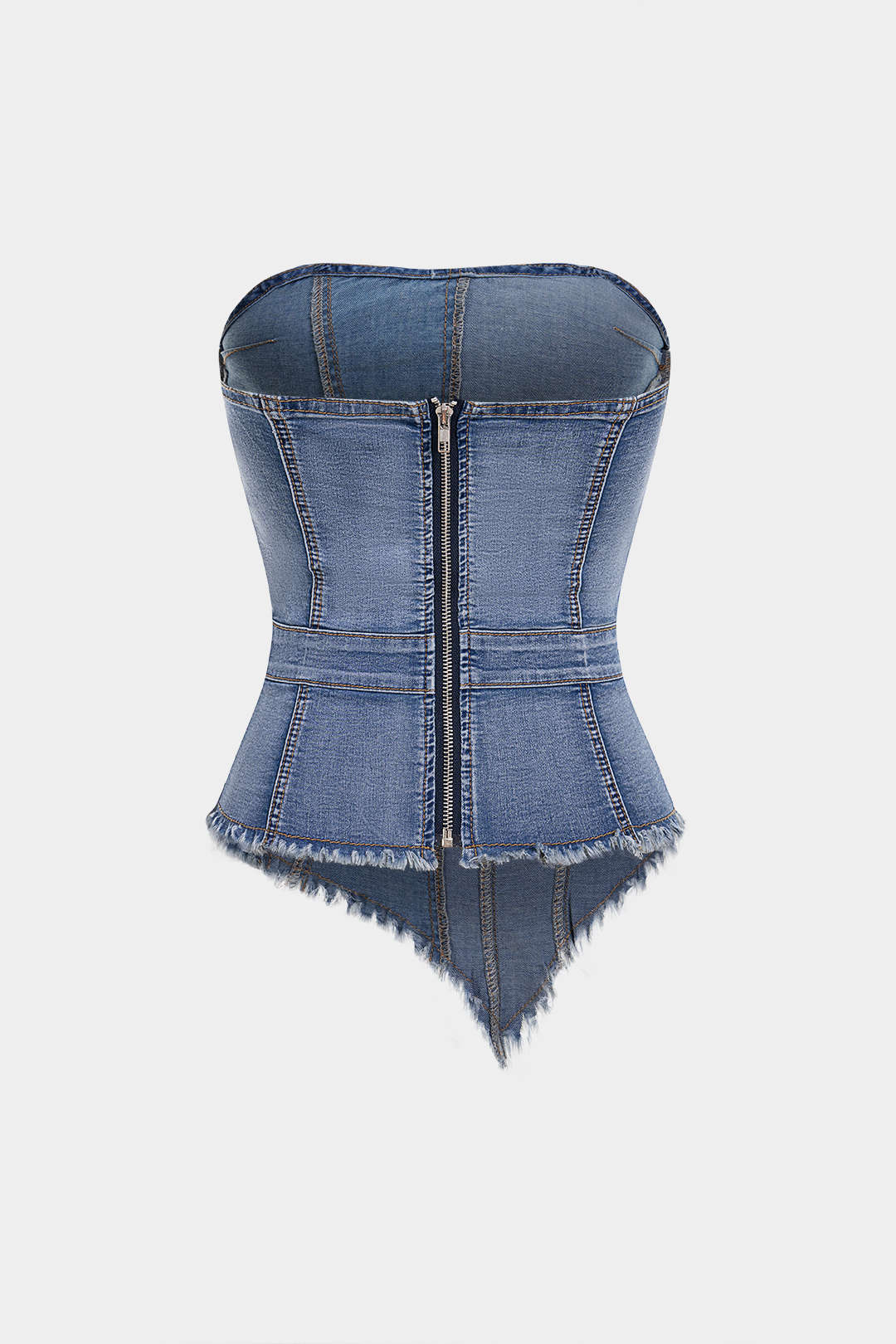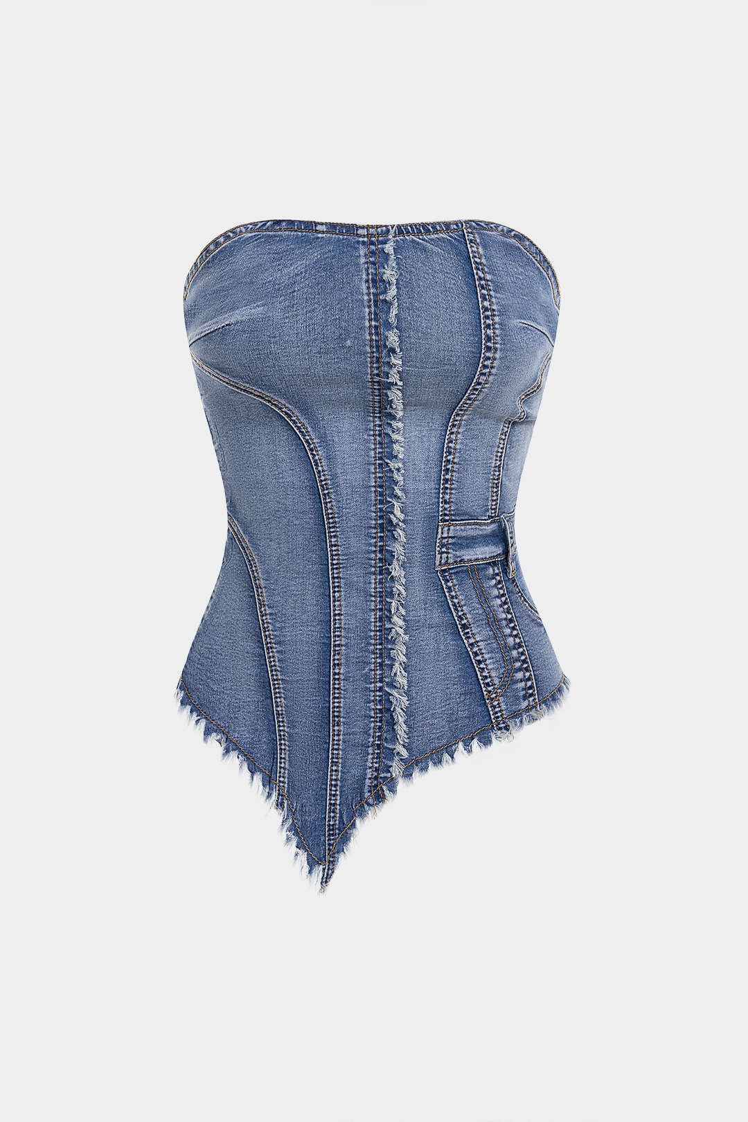 Denim Frayed Asymmetrical Tube Top