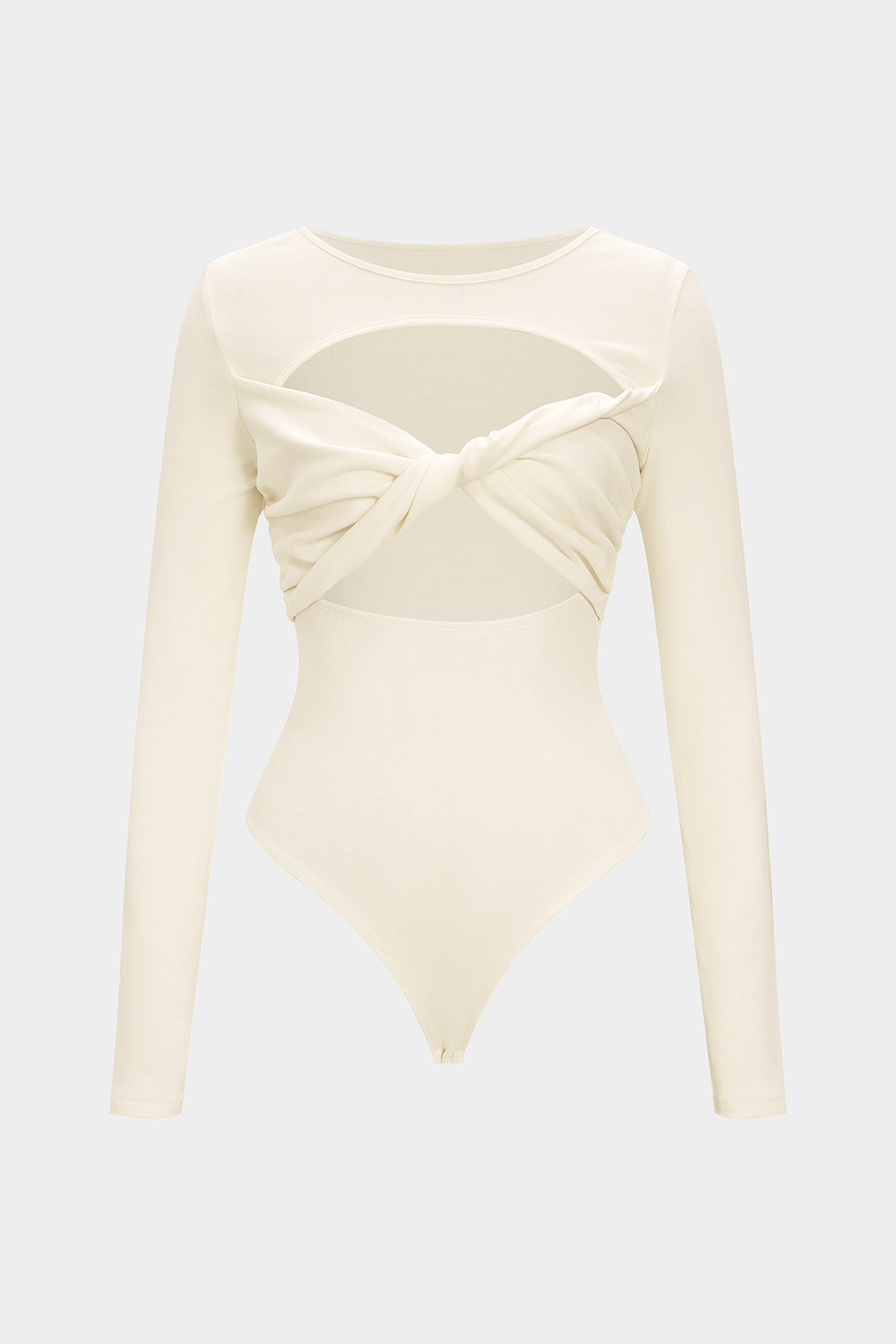 Cut Out Twist Knot Long Sleeve Bodysuit
