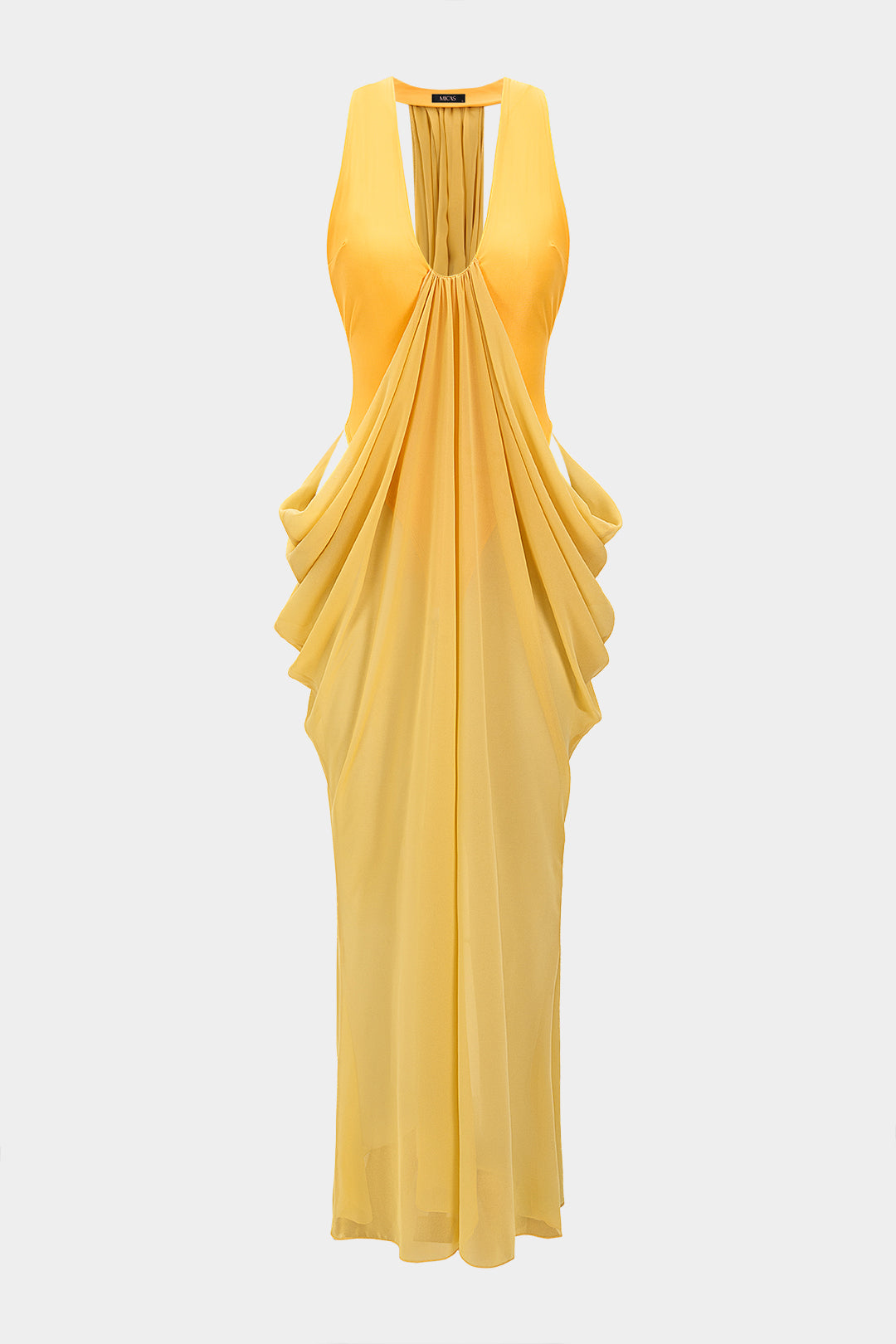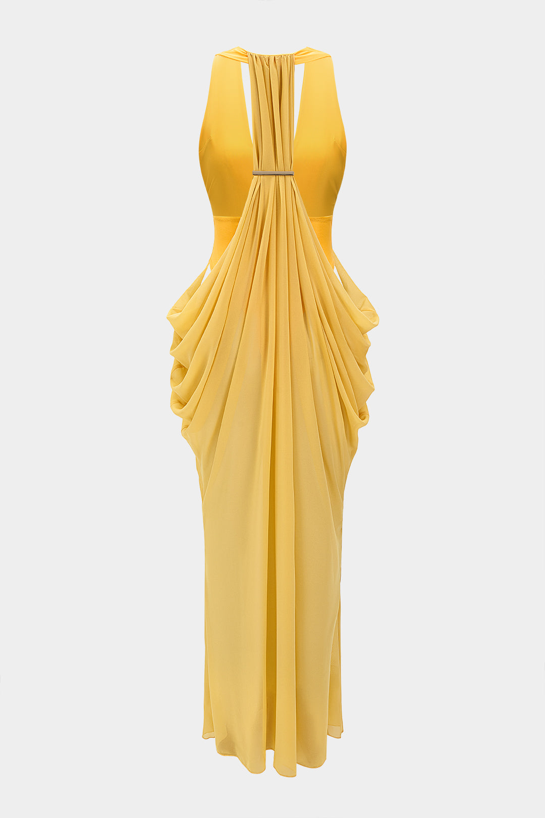 Mesh Patchwork Halter Neck Sleeveless Maxi Dress